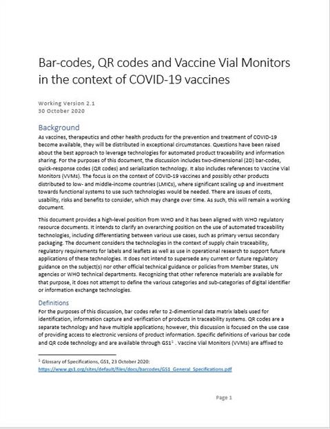 Bar Codes Qr Codes And Vaccine Vial Monitors In The Context Of Covid 19 Vaccines